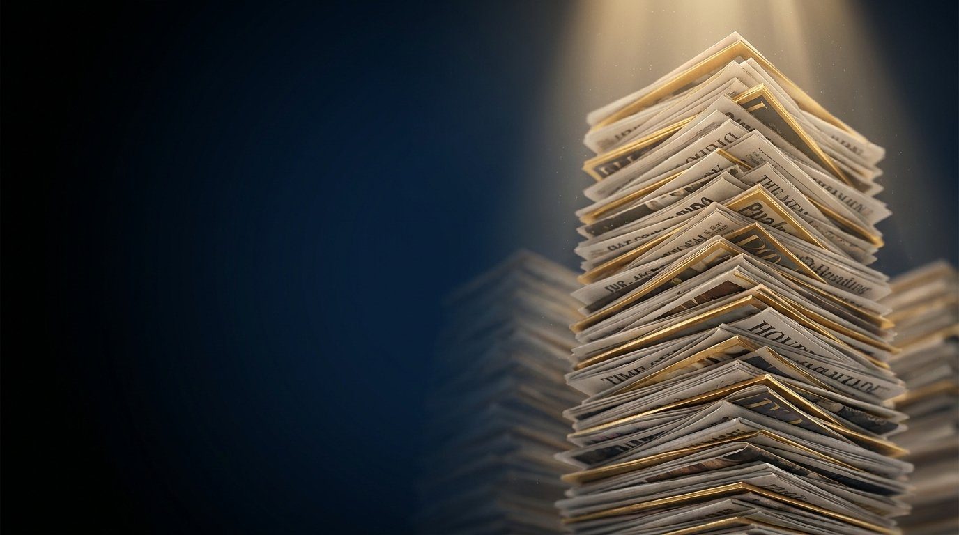 Newspaper stack with spotlight